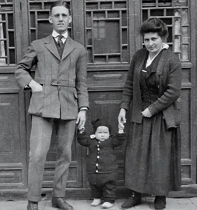 这个对比很直白,男人西服三件套,女人呢绒外套,孩子穿大棉肚兜,门板是老式的格扇,外侨在中国街头合影,就是那么一瞬间的交错。