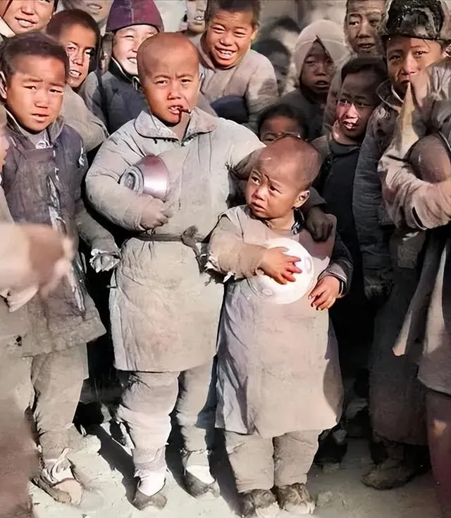 饭碗是铝的,轻轻一敲就当玩具,小伙伴脸上都是风灰,笑着闹着,其实是排队等饭,轮到谁谁就往前挤一步。