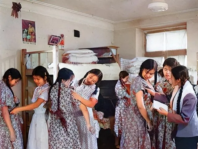 大哥大姐们,这张照片拍的是1950年纺织厂女工宿舍,瞅瞅这帮姑娘们多开心啊,一个个都在试穿新衣服,脸上笑得跟花儿似的,那时候能穿上新衣服可是件大事儿,不像现在想买就买,那会儿有件新衣服恨不得宝贝得不行,姑娘们围在一起试衣服,互相帮着整理衣领袖口,那份单纯的快乐现在想想都觉得美,那时候虽然物质条件不富裕,可大伙儿心里头踏实啊,有活干有饭吃,这日子就有了盼头。