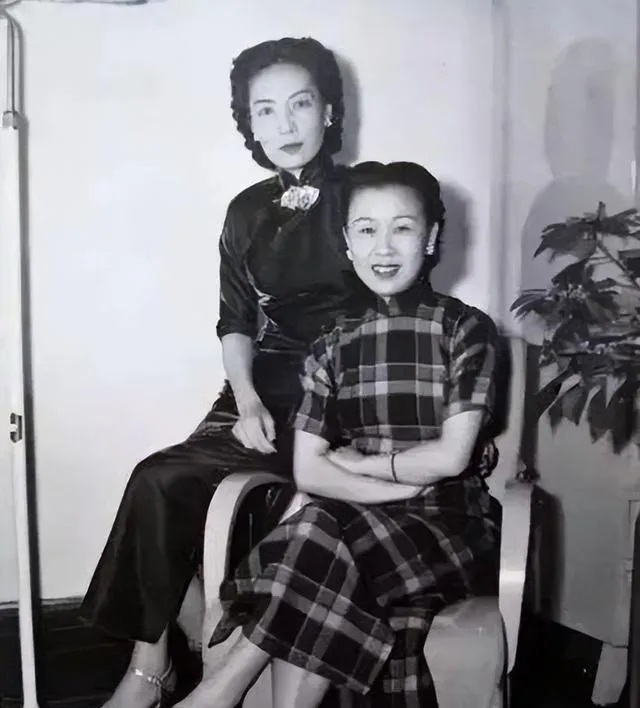 右边那位豹斑样的暗花旗袍很抢镜,左边那位一张从容脸把风头又拽了回来,强强对话,照片都跟着硬气起来。