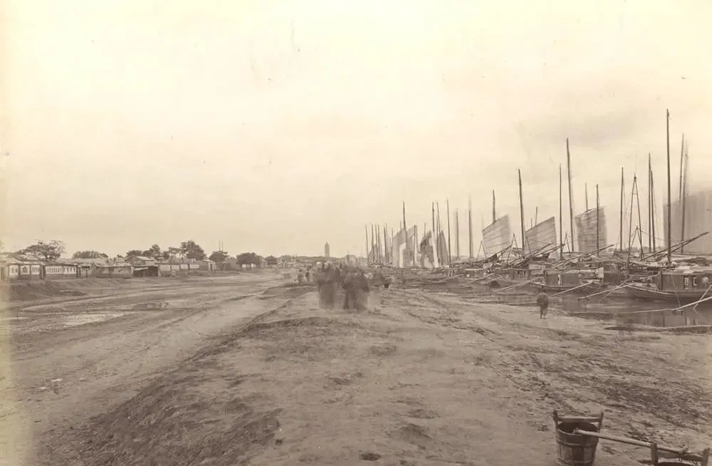 这一大片桅杆林子叫通州码头,京杭大运河北端的忙地,岸滩泥多,脚一踩能拔出个响,顺风的时候船帆齐刷刷地鼓起来,远处那根细针一样的影子是燃灯塔,船到塔前心就稳了,掌舵的喊一嗓子,到了北京地界喽。