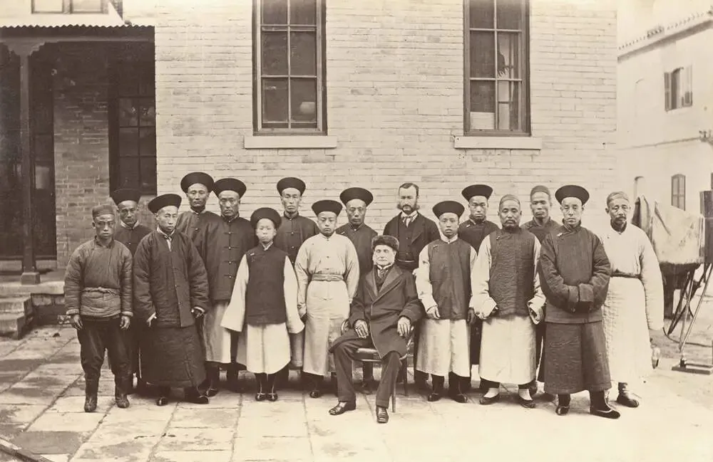 这张摆得端端正正的队形叫合影,坐中间那位是洋务场上的大人物,身后站着通事和随员,长袍马褂一色,是那阵儿的礼数,脸上多半没笑,拍照慢,笑久了脸酸,爷爷指给我看,说看衣襟,补丁细密的才显得体面,这话现在听着也不落伍。