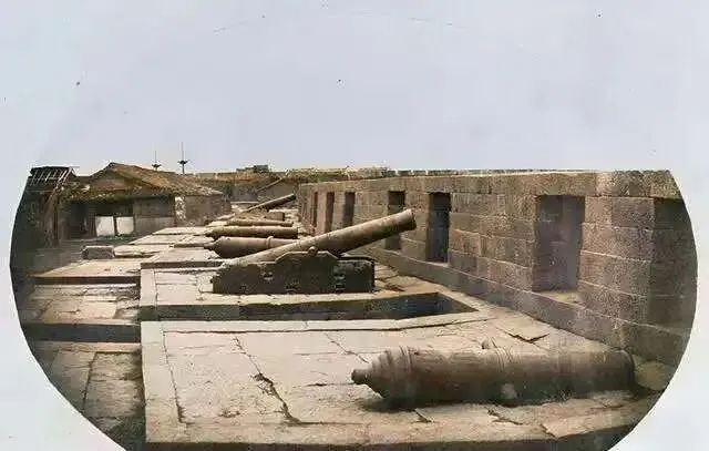 这里是一处海防炮台,有的炮身已经躺在地上,有的还保持着准备放炮的样子。