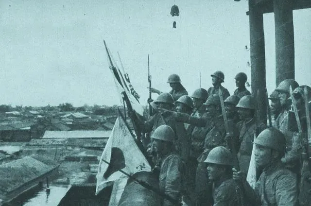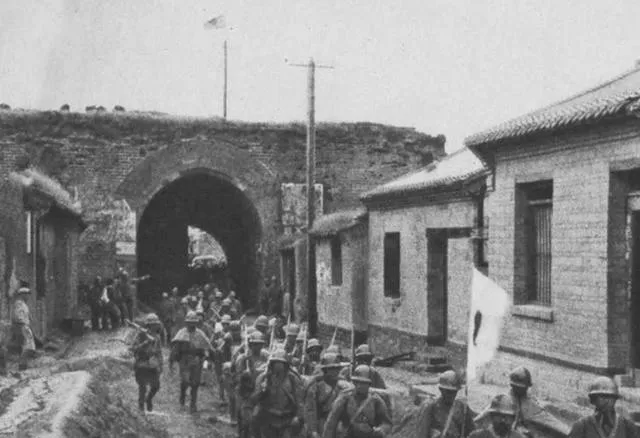 这个场景你一眼就懂了,他们挤在城墙口子上挥旗子,旗杆细长,刺刀全亮着寒光,雨后屋顶发黑发潮,下面的百姓哪敢抬头,以前这面旗一出现,街上店招就被撕得稀烂,现在想想,城破那一刻最安静,只剩兵器和皮靴摩擦的声响。