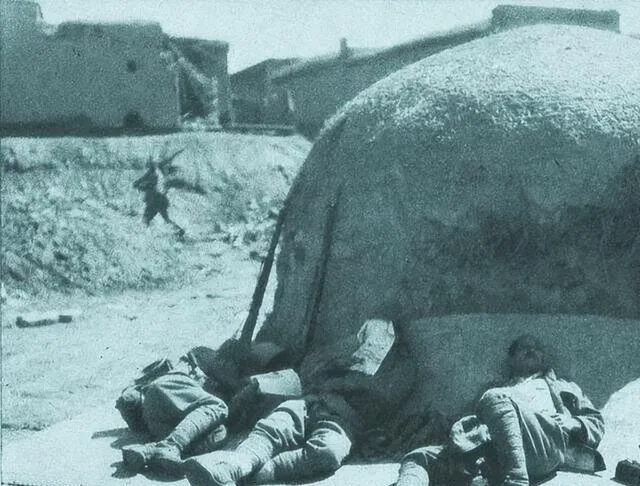 这张是午时的太阳,几个人缩在土包边,枪随手一搁就睡着了,他们睡得踏实,是因为周边的反抗被掐住了,醒了继续横行。