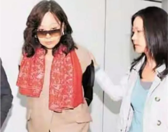 同一个人换了另一副面孔,超大墨镜遮住半张脸,红围巾垂在胸前,肩线有点塌,旁边有人扶着胳膊走,她不说话,整个人像是被抽了气的气球,这些年风云跟着人走,风停了,人就蔫了。