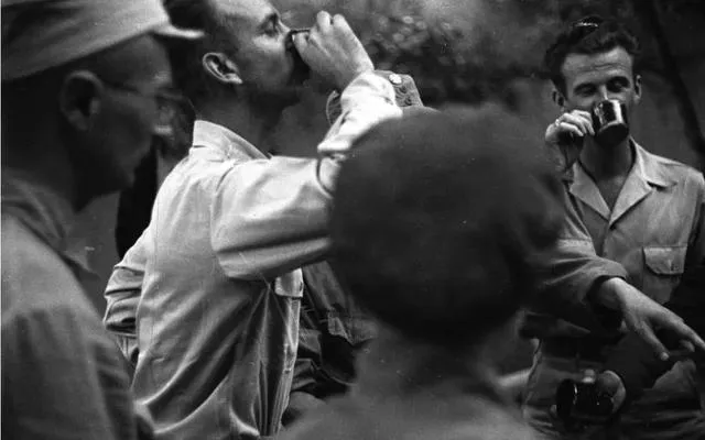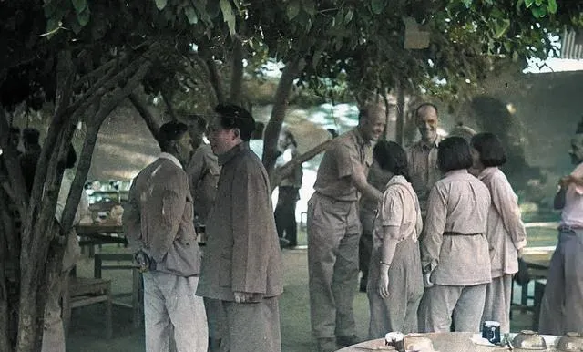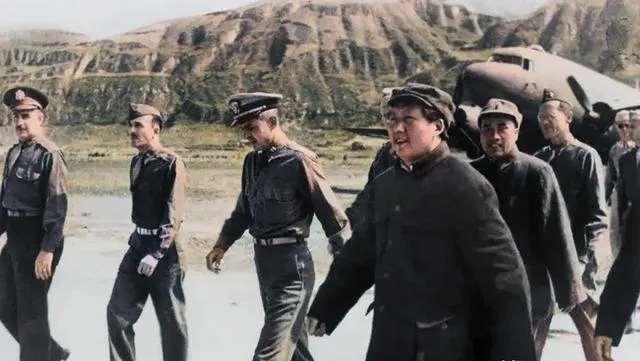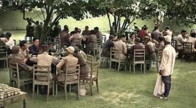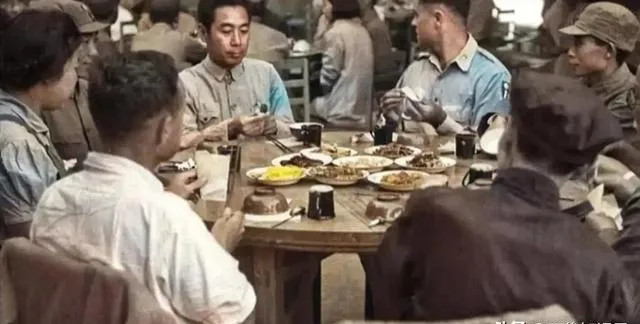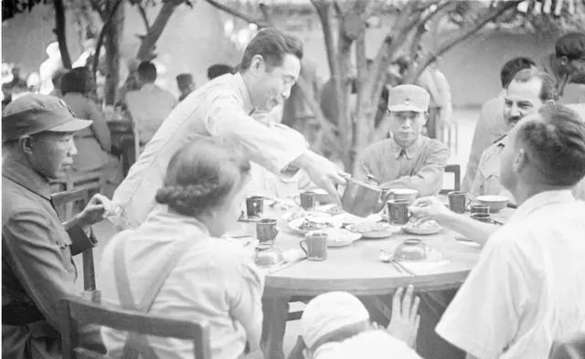 1944年,美军观察团在延安老照片,宴会上元勋们的神情各不相同。