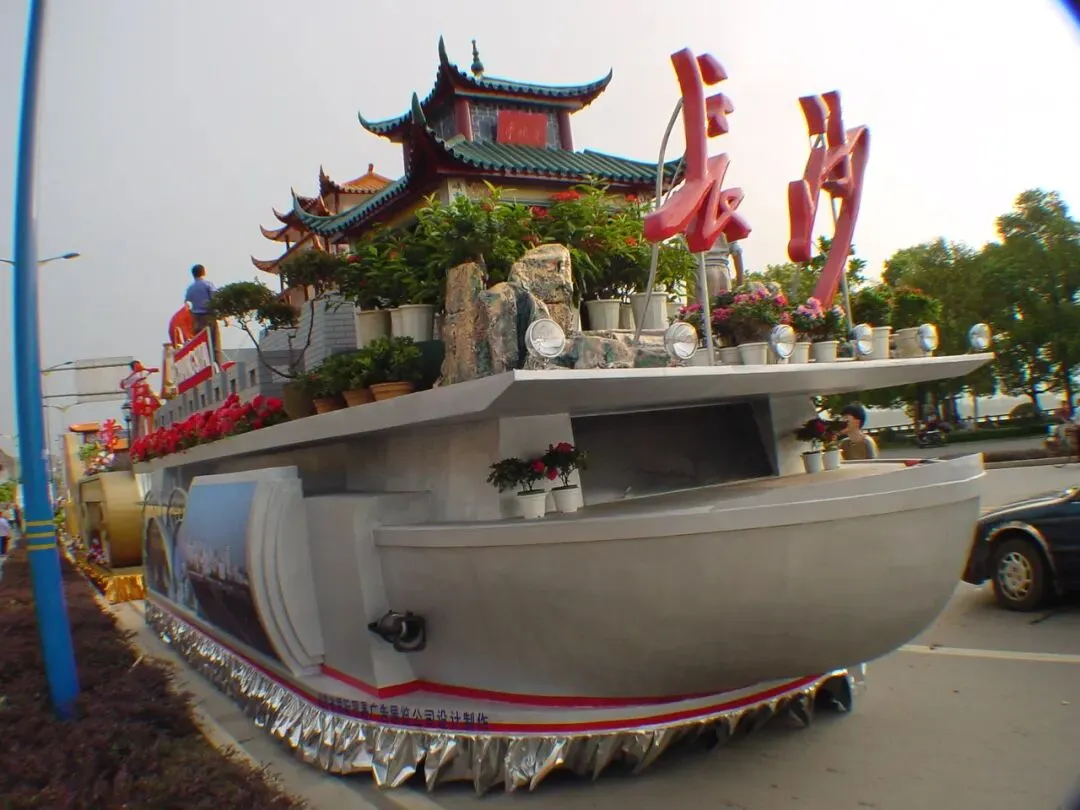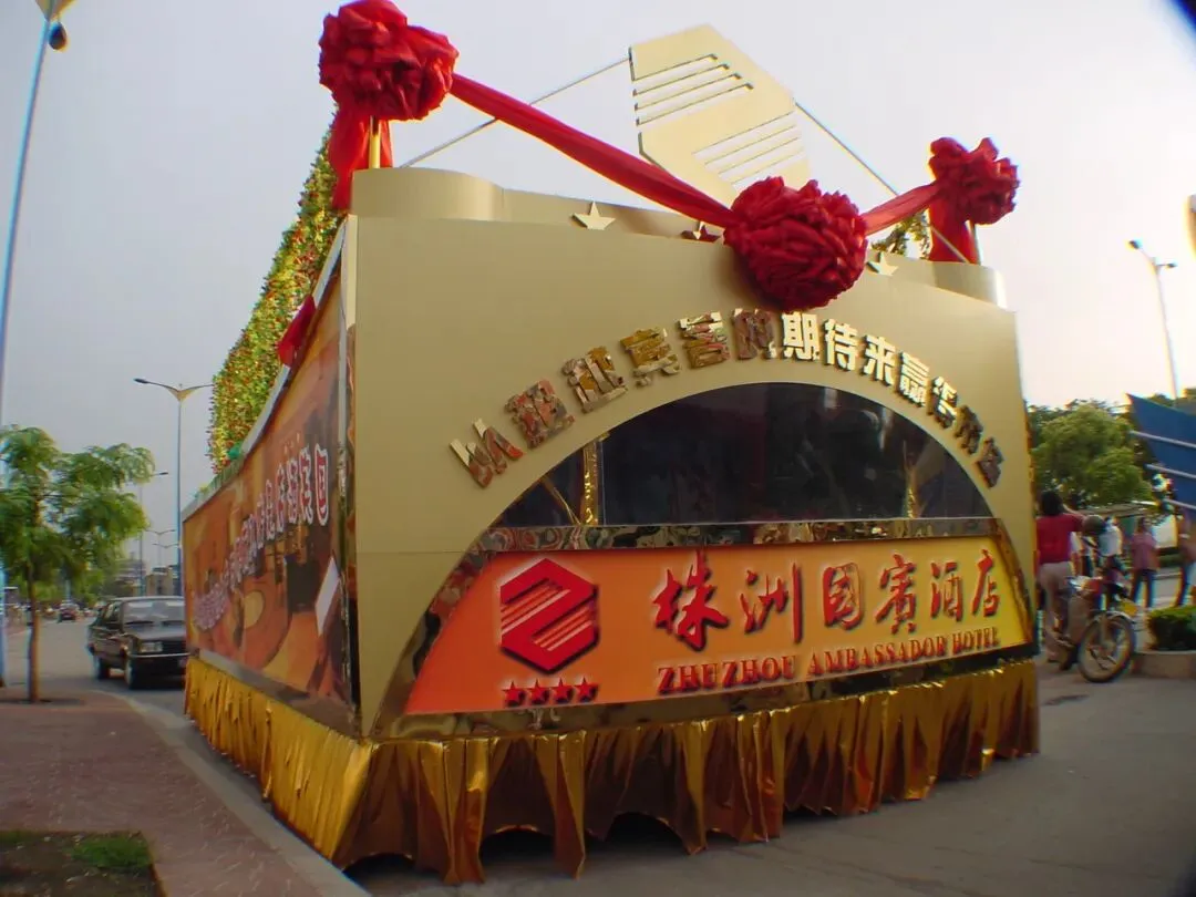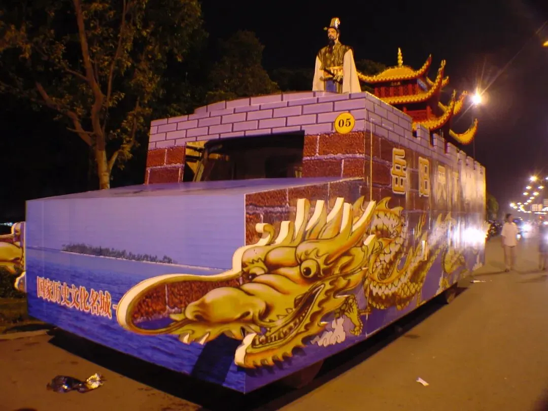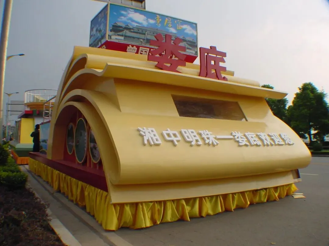 2002年9月11日,长沙湘江大道,来自全省14个市州的彩车整装待发,准备参加第二天开幕的省旅游节彩车大游行。