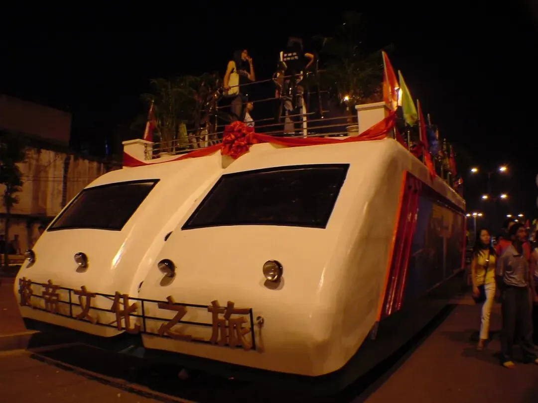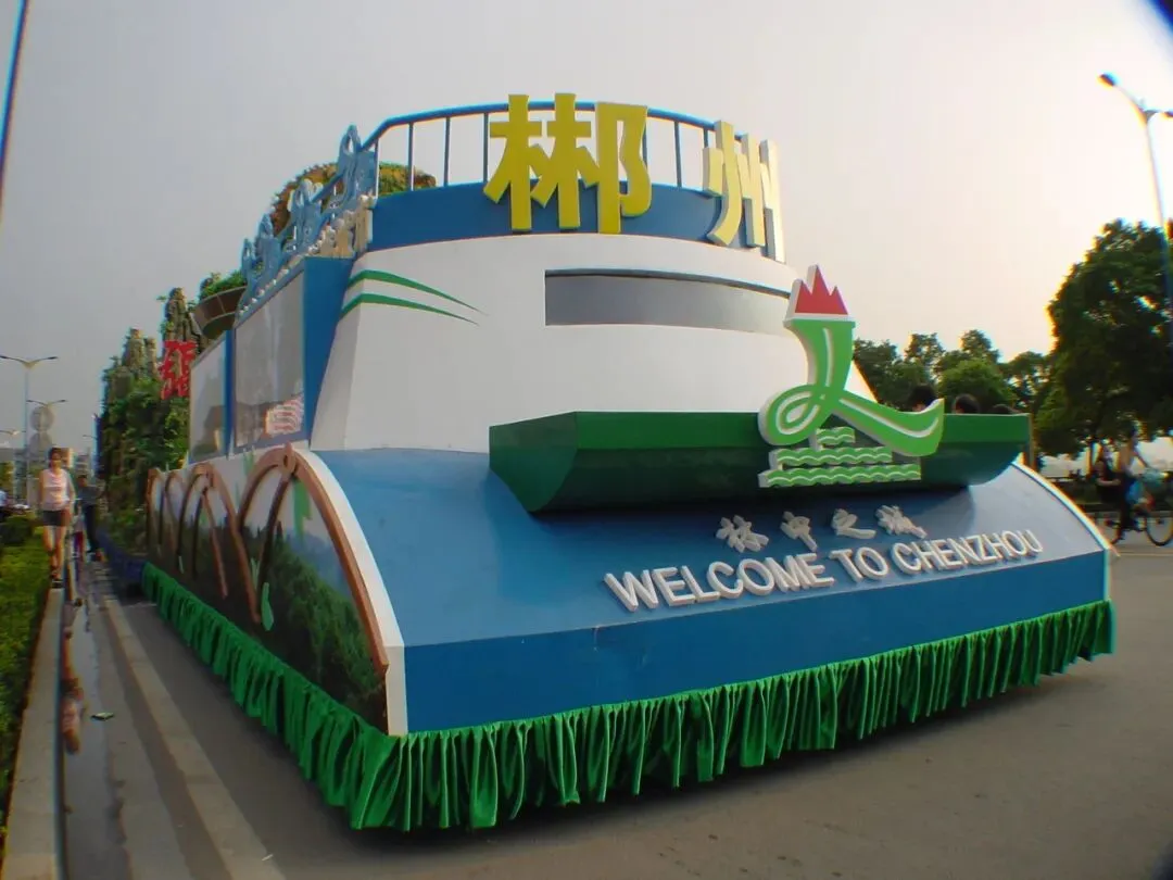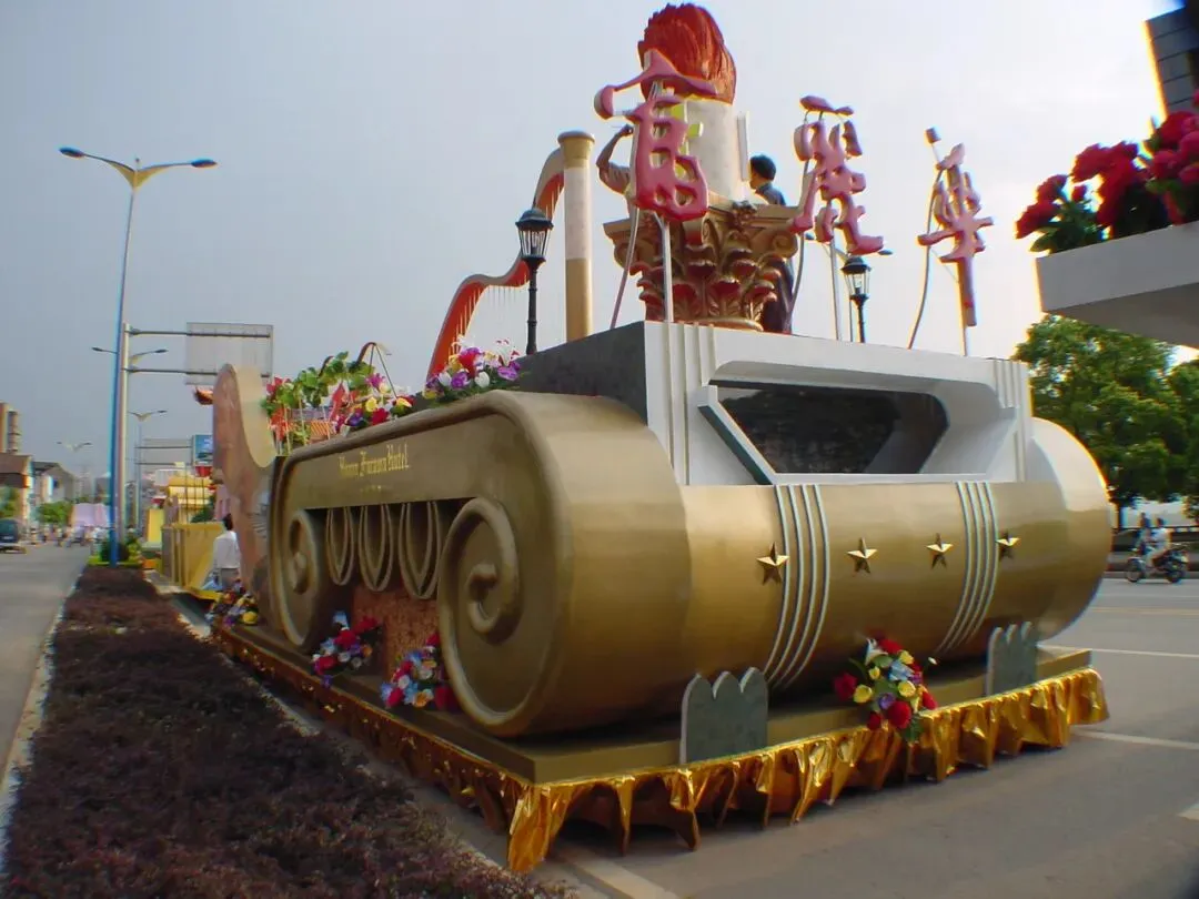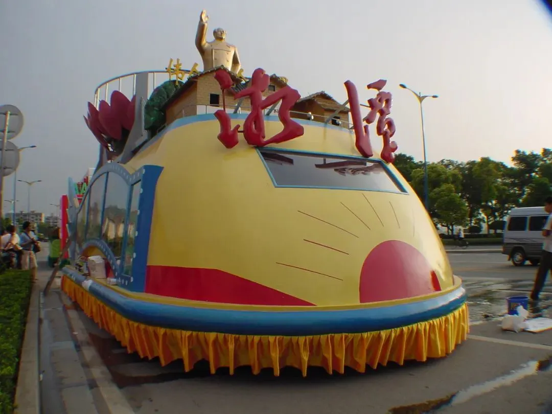 2002年9月11日,长沙湘江大道,来自全省14个市州的彩车整装待发,准备参加第二天开幕的省旅游节彩车大游行。
