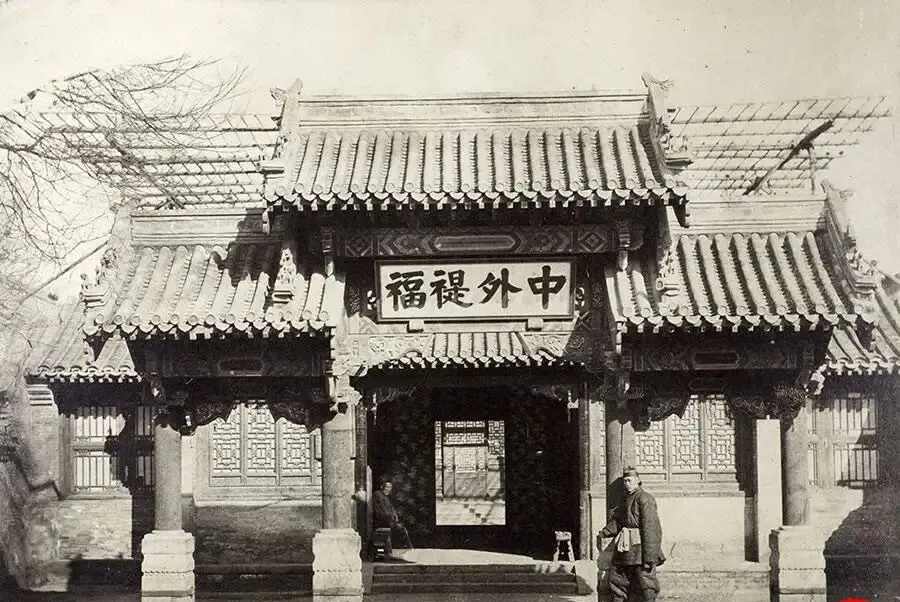 这个门楼叫总理各国事务衙门的大门,匾上四个大字中外禔福,木匾底色发乌,边框是卷草纹一圈圈绕过去,冬天的阳光晒在灰瓦上,瓦当像一个个扣子,有点亮又不太亮,爷爷站在照片前念叨,说那会儿才开始和洋人打交道,门是开了,心还半掩着。