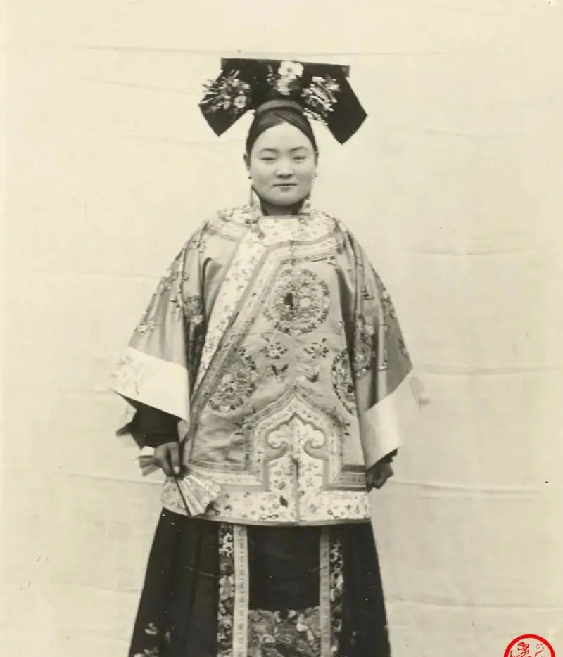 这个发饰叫大拉翅,黑亮的翼子在头顶平平展开,耳边坠花轻轻摇,身上是旗装褂子,襟边团纹压得实,下面却配一条马面裙,褶裥像扇面一层层铺开,她笑得有点甜,眼睛眯起来,像刚从屋里出来晒背的猫,那时候衣裳是规矩,现在呢,混搭成了时髦,走在街上谁也不会多看一眼。