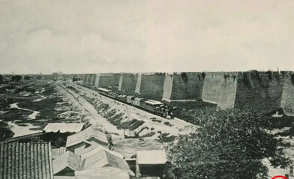 这个长蛇一样的列车贴着城根走,叫城外便道线,一列车弯着腰往前挪,左边是沟渠干涸的河道,右边是城墙的阴影,远处屋顶层层叠叠,像只翻不开的书页。