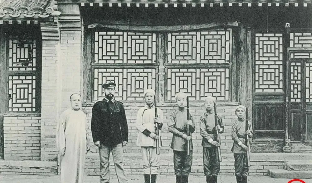 晚清老照片:保和殿前荒草萋萋,王爷的儿子们接受军训。