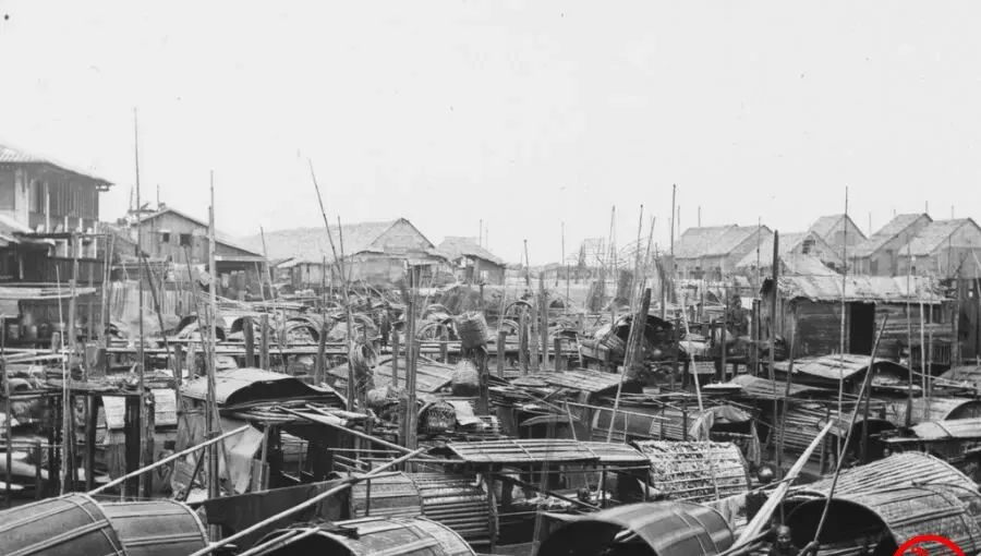 这个密密麻麻的小棚叫舢板,有的盖着竹篷,有的架木桁,绳索在桅杆间拉成网,篮子吊在船舷上,远处岸上的木屋连成排,水里住人,船就是床和灶,夜里灯一盏盏亮起来,像天上落下来的星,师傅摇橹时口里哼个小调,孩子在篷里伸脑袋看热闹,那时候出门靠船,现在靠地铁,路是越修越宽,人却在路上越走越快。