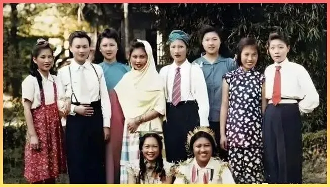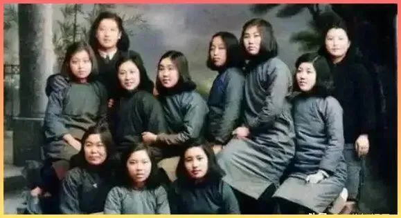 最后这张大合影,真的是气.场.全开.。清一色的冬装.旗袍.,每个人.脸上都写着从容。据说在民国时期,培养一个大学生每.年的花费,相当于.普通人家.好几年的收入。这些照片里记录的,不仅仅是青春.,更是一个.时代最顶.尖的资源堆砌出来的精英阶层。