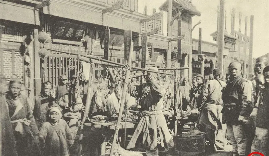 这架子是竹杆搭的,一头挂鸡一头坠腊肉,摊主手起刀落,案板上油光锃亮,围观的多,卖的也快,后面写着洋字的招牌落了闸,义和团闹得凶的时候,门脸一夜之间黑了半条街,姨父念叨过,老百姓图口饭吃,管不了天上的事,能活日子最要紧。