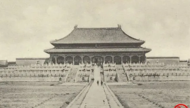 这个大殿叫太和殿,民间爱叫金銮殿,三层汉白玉台基托着,石栏望去直发凉,平时皇帝登基行大礼才走这道中路,日常上朝不在这儿,照片里台阶空敞,几个人影小得像豆子,威严在,主心骨却不在,看着就生怅。