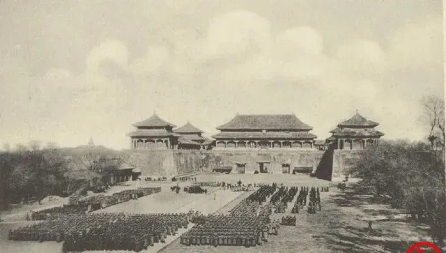 这片开阔地儿是午门前场,图上黑压压一片队形摆得板正,德军在这儿庆生,鼓号齐响,旗子迎风,把皇城当操场使,奶奶当年听老辈说,午门外本是放榜宣诏的地儿,那天却成了人家的喜筵场,心窝子堵得慌。