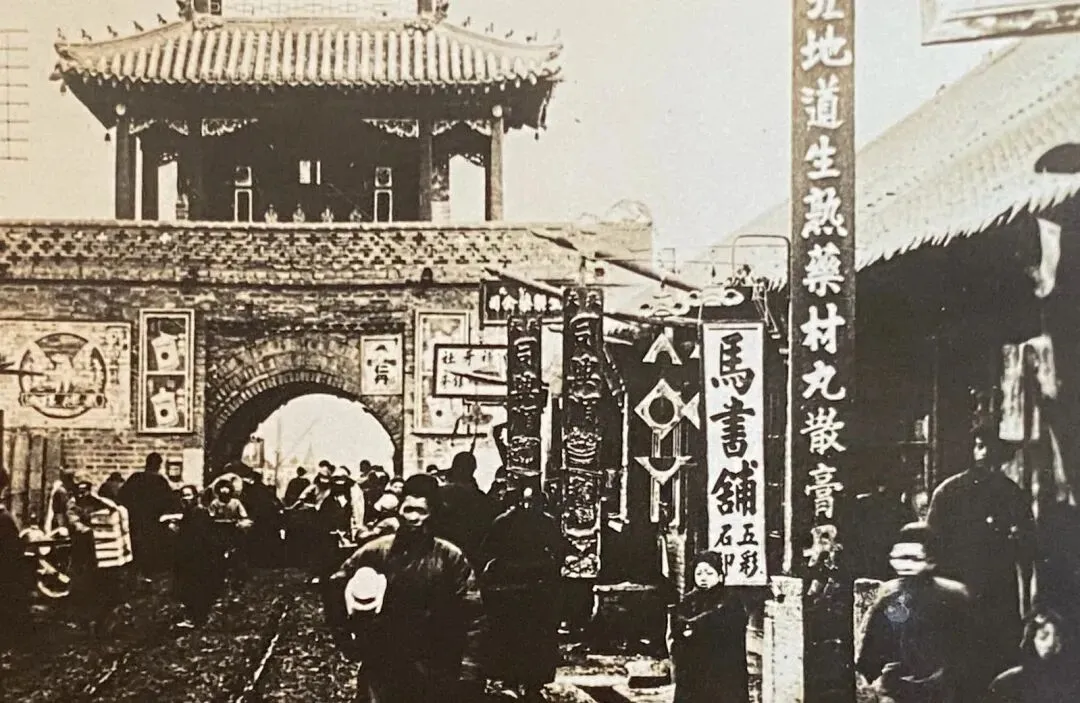 这张摄于民国初期的开原老城钟鼓楼照片,在店铺林立的街道上,有一家店非常显眼---马书铺五彩石印,这个店铺的存在,充分体现了当时开原的新潮。