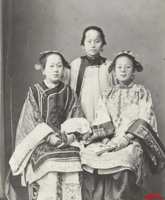 这三人的打扮叫新式里带点旧味儿,前额剪了齐刘海,袄身收腰利落,脚下却还裹着小脚,站定了像三枝玉簪,桌上那座台钟也抢戏,指针一分一分走,像催着人从旧规里往外挪一步,外婆看见她们的袖口纹样,说那会儿姑娘们去照相,都会挑最精神的一身。