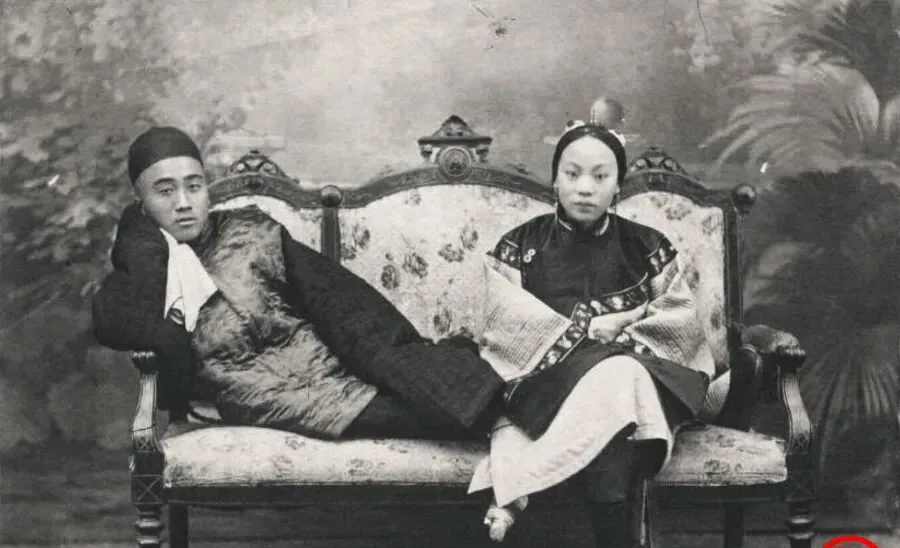 晚清老照片:小脚女子参加世博会,夫妻合影动作亲密。