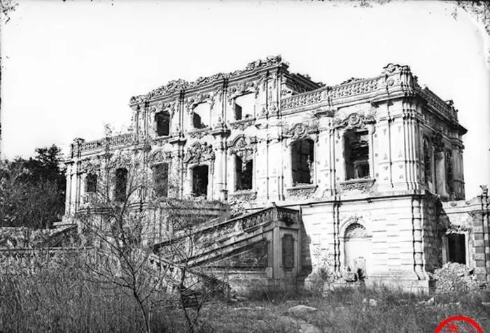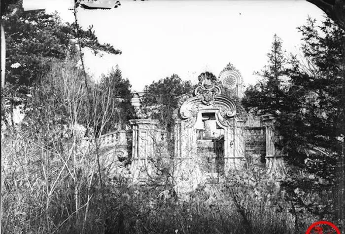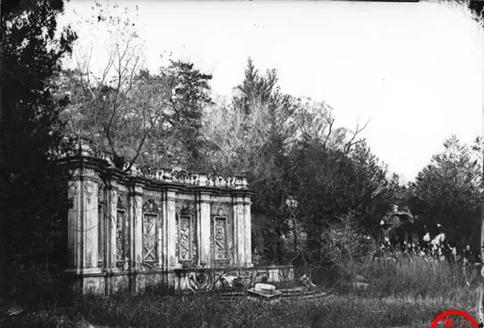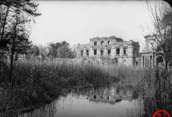 晚清老照片:破败不堪的圆明园,杂草丛生。