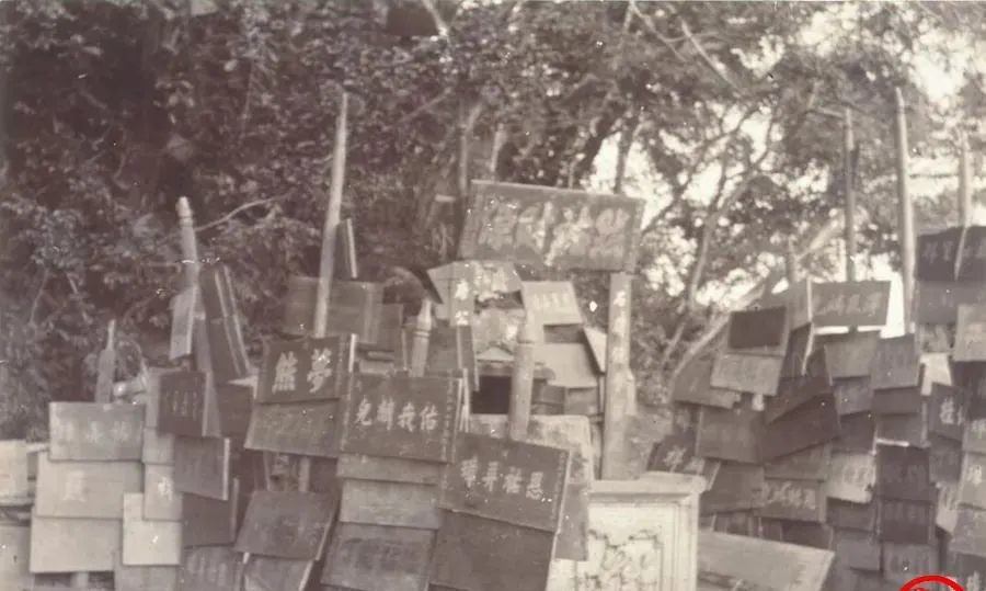 这片木牌叫祈子匾,写着梦熊和恩祐弄璋,意思都一样,求个儿子平安到来,木板刷黑漆,字用朱砂勾,插在土里一排又一排,旁边还夹着求财求吉祥的,庙小路窄,神却忙,过去重子轻女的风气重,现在医院里拿到的超声单多是祝福,不是谁都还惦记着传宗接代这四个字了。
