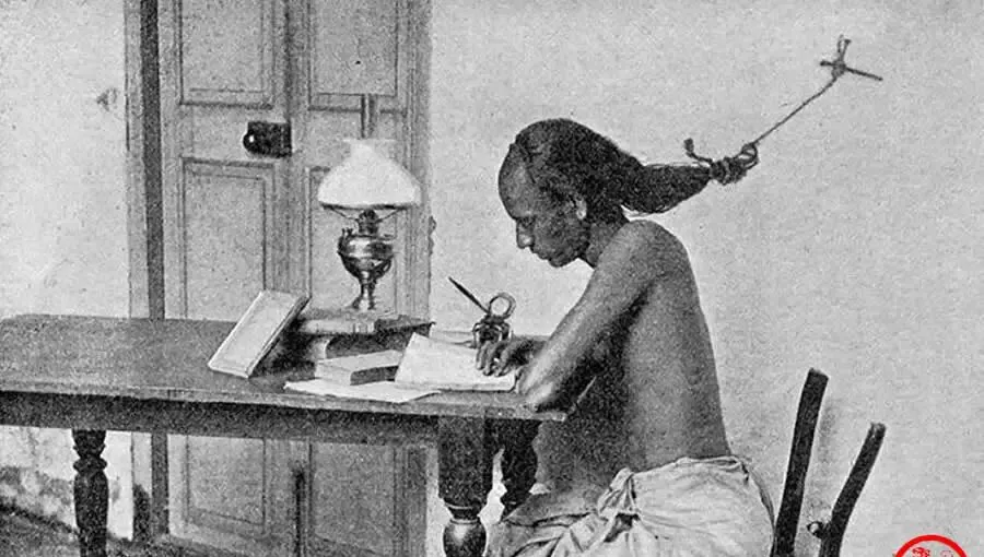 晚清老照片:湖广总督张之洞伏案办公,年轻人苦读上演“头悬梁”一幕。