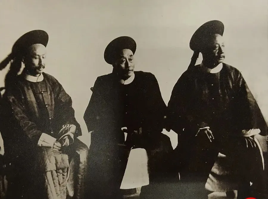 这张三人合影里,中间那位是曾国藩左右手出入的幕僚旧交,左看右看都是湘淮系的人气场,黑呢朝服坐得稳当,手背放膝上,神情像在听部下回报军饷,晚清的官场合影有讲究,坐中者压轴,两旁微斜,既是礼法也是排场,老照片里这些小讲究,现在年轻人看着都新鲜。