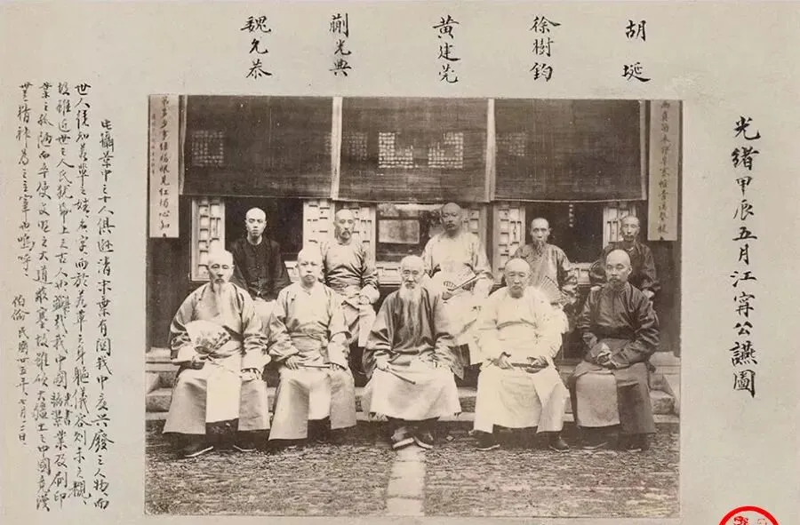 这张团坐的叫江宁公议图,几位大员并排,前后两排,旁边还写着名字和年月,像我们现在开务虚会的合影,只是那时没有P图也没有滤镜,谁的肩略高谁的鞋尖露出来,全都坦坦荡荡,爷爷以前念到这些名字就说,“人坐得端,事也就容易端起来”,听着朴素,却是老理儿。