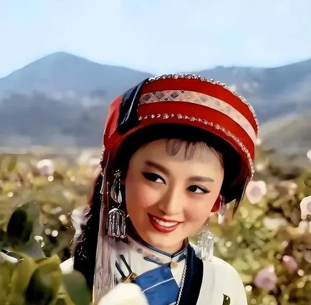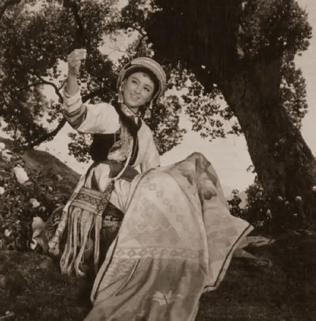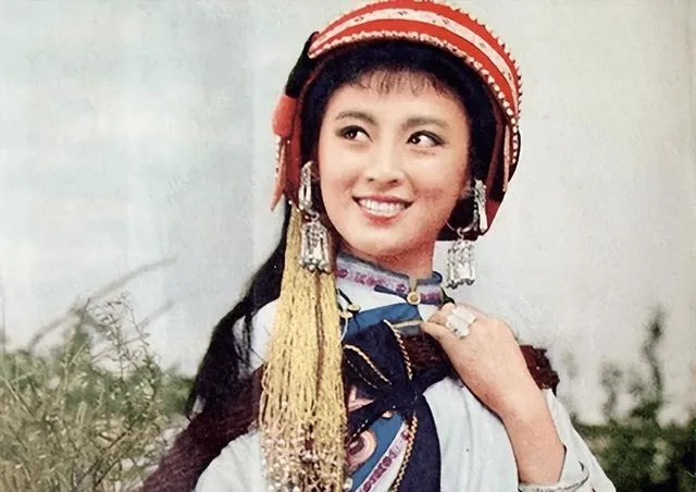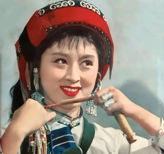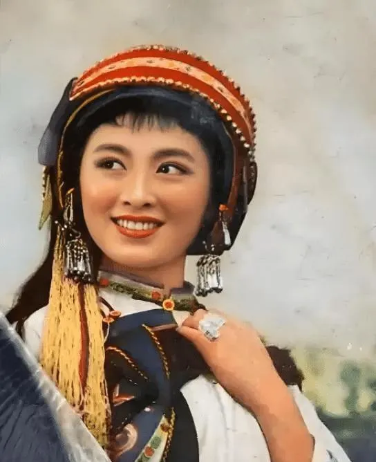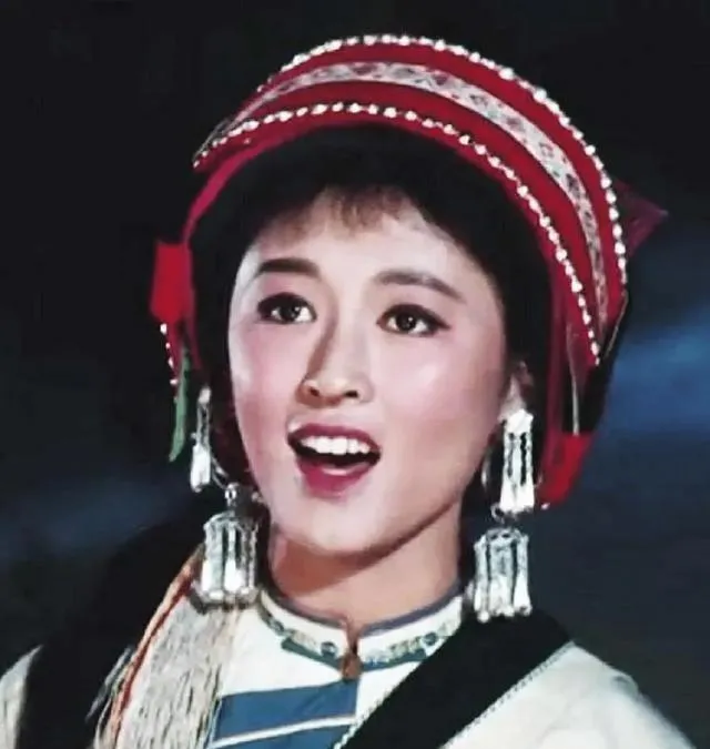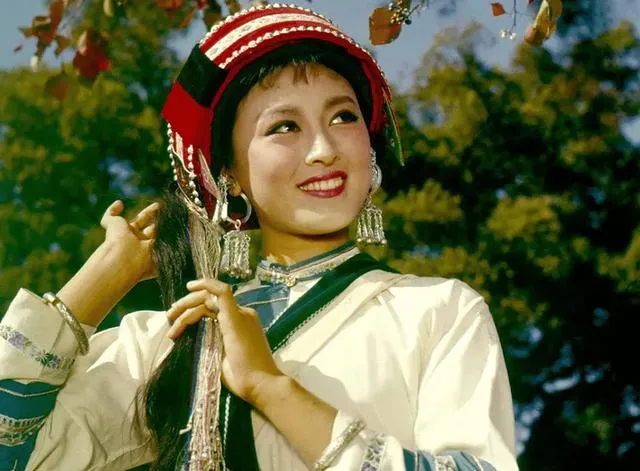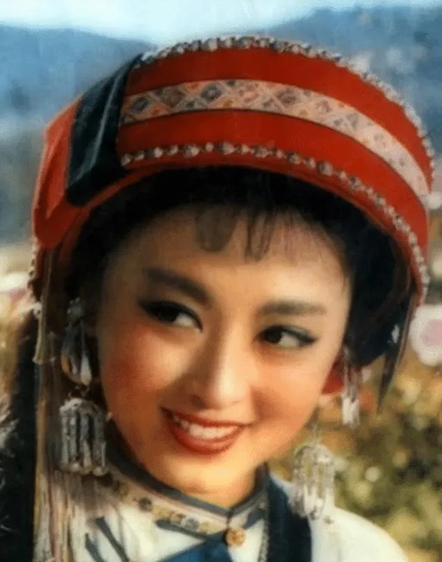 这个绿头巾是早年的造型照,嘴角更稚气,和后来阿诗玛的艳丽不一样,像学生妹刚入团,手里还攥着练功服的绳子。