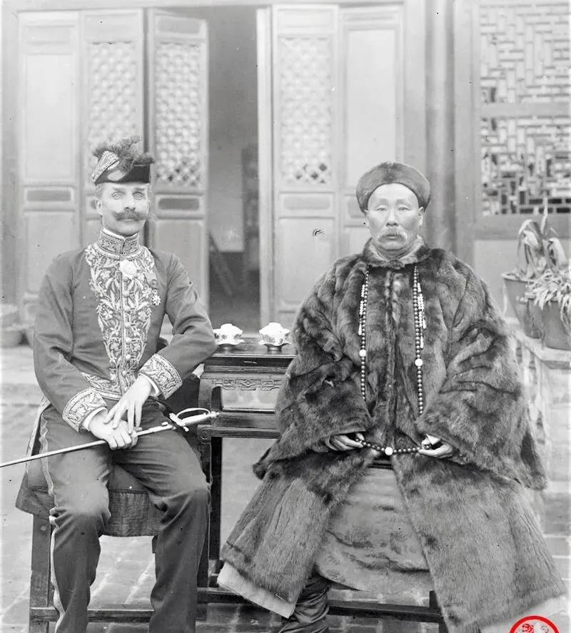 这个毛领大氅里边坐着的叫提督,胸前一串朝珠垂到案边,脸阔耳厚,手里把着念珠不松劲,旁边那位军礼制服亮得晃眼,绣线盘蛇一样绕着袖口,案上搁着茶盏和点心盒,奶奶说,冬天的皮袄一披,炭盆烤着脚背,手心却还凉,权势再大,身子骨也躲不开寒气。