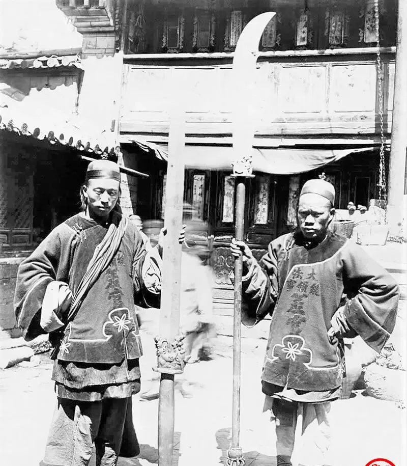 晚清老照片:提督大人出镜,差官手提青龙偃月刀。
