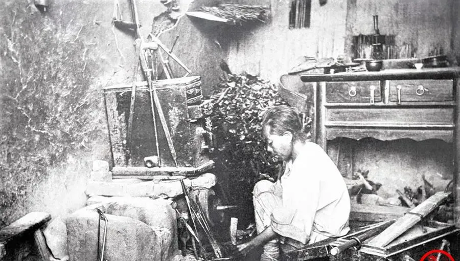 这个火口和风匣搭在一起叫打铁铺,土炉子上压着铁砧,旁边堆木炭和旧铁,师傅蹲着拉风箱,胳膊上的汗一道一道流,火舌舔到钳子尖上,叮叮当当敲一下火星就飞一把,铁锤的把子被手汗磨得发亮,妈妈说,家里的镰刀口钝了就拿到这儿,师傅不抬头,三下两下开刃,递过来只问一句,趁手不,利不利,你试试就知道。