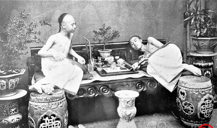 这套器具叫鸦片具,烟灯细脚,锡壶小嘴,长长的烟枪在手上滚油一样顺,两个年轻人半躺半卧在石榻上,案上摆满壶盏,眼皮耷拉着像睡不醒,奶奶叹气,说那会儿一屋子的香灰味儿,唇边一圈黑,钱就像被洞吸走,过了几十年,街头的霓虹换成屏幕的亮光,迷住人的东西还是多,变的只是模样。