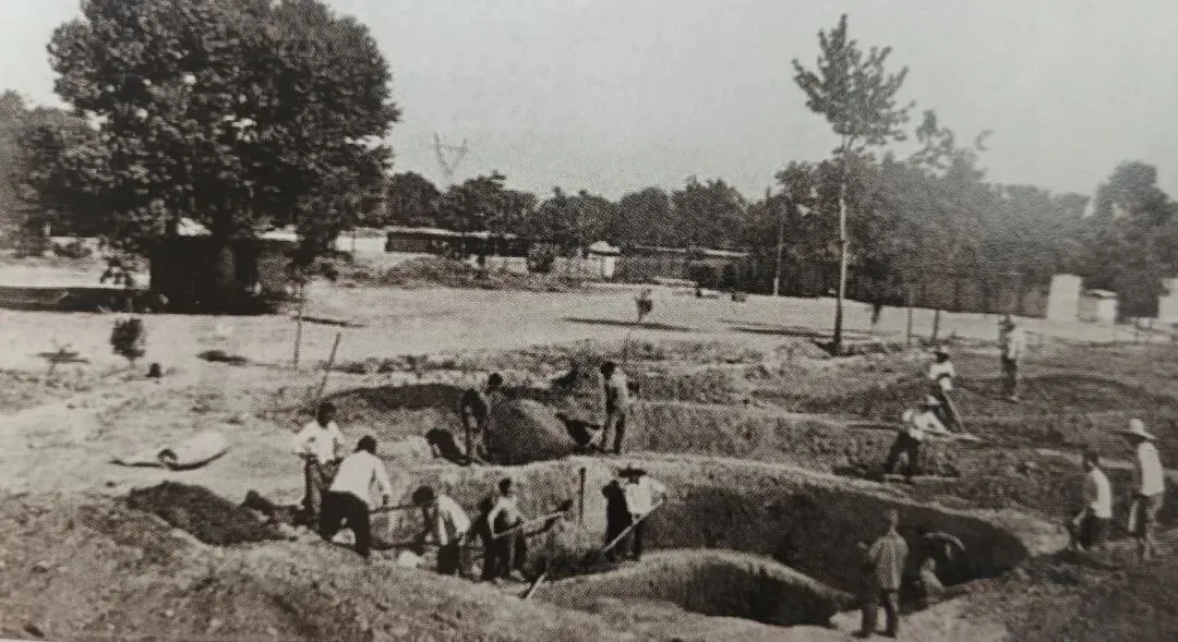 1975年,考古工作者在殷墟妇好墓发掘现场↓