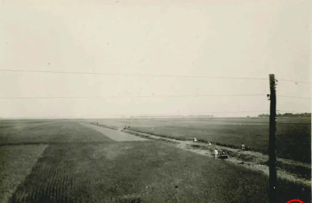 这两道横着的银线叫电报线,杆子粗,瓷夹子亮,最有意思的是同一画面里,前头人还在地里弯腰,后头消息已经能飞奔千里,这种新旧叠在一起的感觉,很洛阳,也很那个年代,爸爸笑说要有这线,捎个口信不用托马快了。