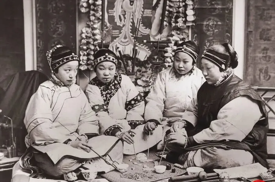 这几位坐在炕上,长竹签在手里拨拉,面前摆着骨牌、铜钱、茶碗,旁边水烟袋和鸦片烟枪躺着不吭声,眼神互相递来递去,全是白的,谁都不肯认输,这套玩意儿叫打签斗子,出手要快,嘴上也得利索,赢的是筹码,输的是脸面,说到底,屋里热闹,门外寂寞。