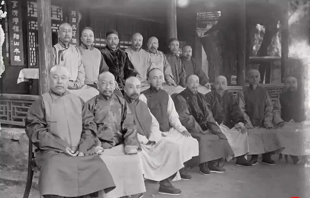 这张人多,前后两排坐满了,脸上神色不见张扬,更多是苦熬与持重,多数都是候补官儿,没实缺,跟着督抚当幕友,写札办文,等一个机会顶缺上任,家里要是有这种老照片,长辈总会指着说,这谁谁当过主事,那谁谁当过道台,当官不容易,等字最难。