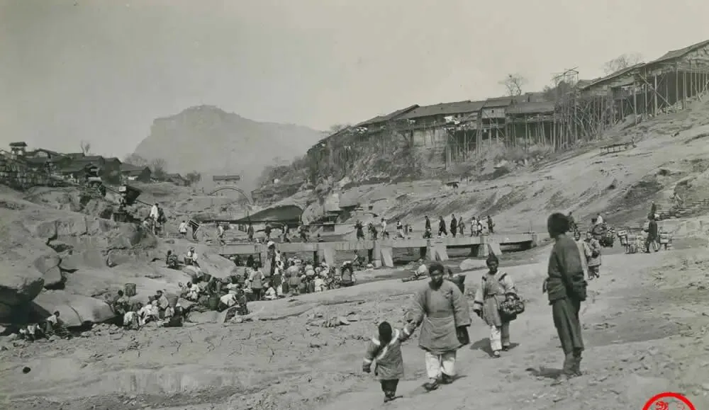 这处河滩的桥叫便桥,木板搭着石墩,水浅时人畜能过,汛期就拆,河岸上蹲着一排装水的人,肩担上横着两只水桶,孩子在石缝里跳脚,老人把包袱背到胸前护着,这样的渡口是乡里要道,赶集靠它,娶亲也要过它,一条桥拴着一村人的柴米油盐。