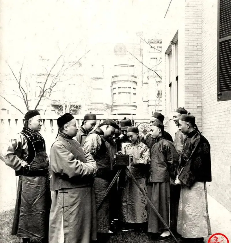这个木架子上架着的匣子叫照相机,大家伙把脑袋挤成一团,像围炉子烤手似的,领头的通译官在比划旋钮和皮闸,嘴里念叨“别晃”,我外公当年说,头回照相心里还打鼓呢,怕把魂儿吸走,后来一旦见识了照片冲出来那一下的“显影魔术”,又抢着拍,谁都想在纸上留个脸。