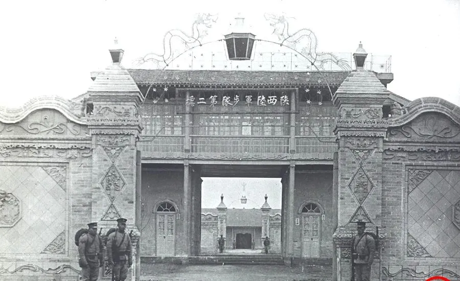 这个大门口上书着“陕西陆军步兵第二协”,砖雕盘龙,屋脊挑角,门墩边立着哨兵,靴跟并得紧紧的,门洞深,里头还有一重影壁,显得挺体面,我走过不少营门,现在都是钢栅和电子门禁,以前要靠人站着守,风一吹帽檐就抖,守的是面子也是城门的骨头。