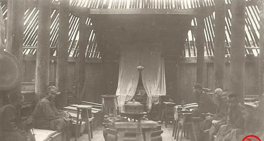 这个地方是喇嘛庙的内堂,粗柱子围成圆,顶上透着天光,正中摆一口大香炉,四周小方桌小木凳挨得紧,布幔垂着,喇嘛们坐得端正,诵经声应该是低低的,拖着长尾,外头世界闹独立、起风浪,庙里一盏酥油灯也不急不慢,很多人说庙里收了不少财物,可你也别只看金银,荒年里,庙锅里的粥也接济过路人。
