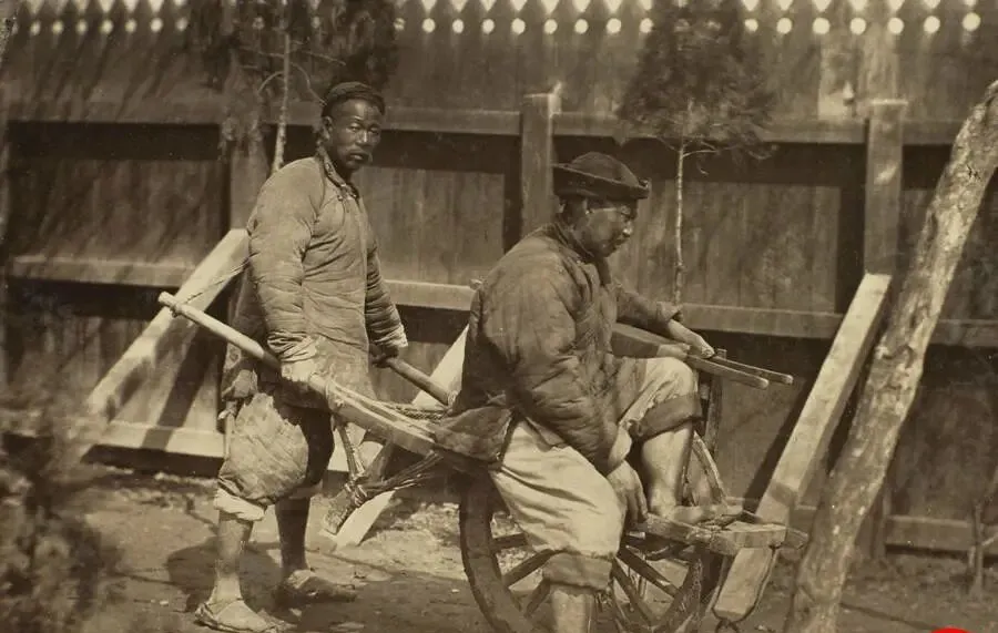 晚清老照片:23岁男子身高超2米,打工人冬天穿草鞋。