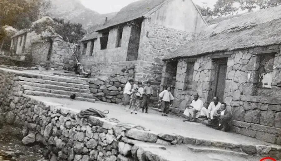 这排房子是石头瓮城一样的屋,粗糙的花岗岩垒起来,窗台也用扁石压稳,屋前石阶一层一层码得齐整,师傅挑石时看纹理不看面子,哪里有缺口就用碎石子楔上,风吹一年比一年紧,现在讲保温讲隔音,那会儿就讲一个结实。