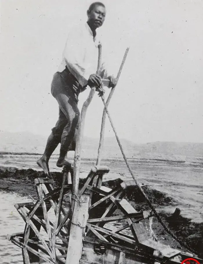 老照片:90年前山东农民的日常生活,踩水车一幕再也见不到。