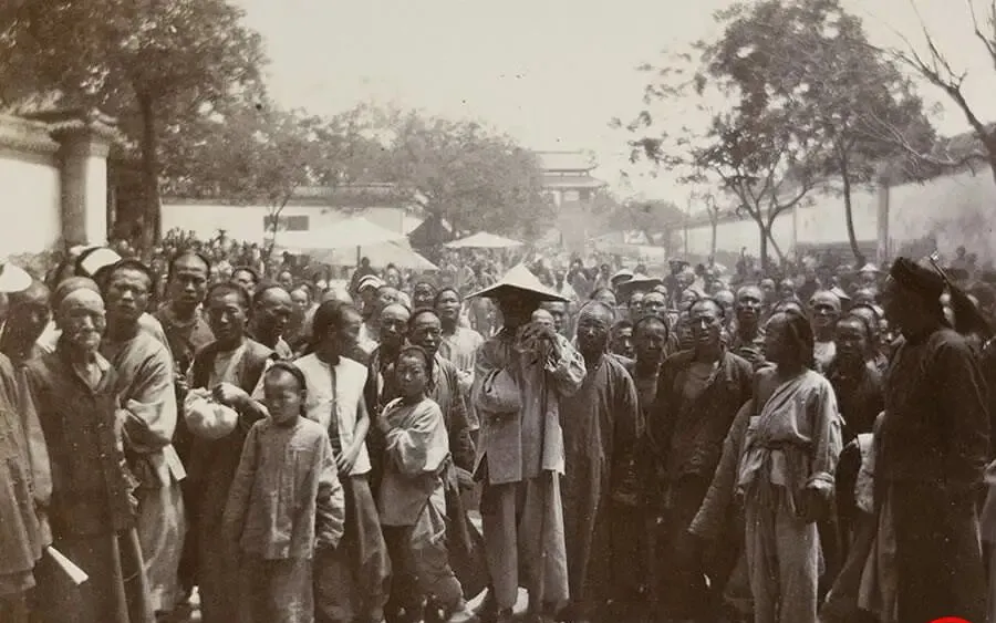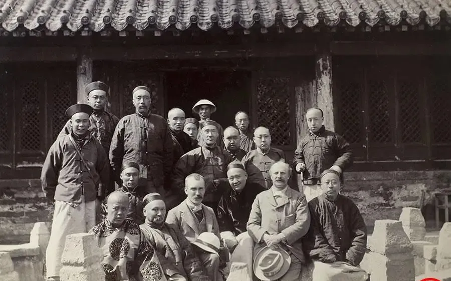 晚清老照片:地方官清瘦虚弱、无精打采,游客在泰山合影留念。