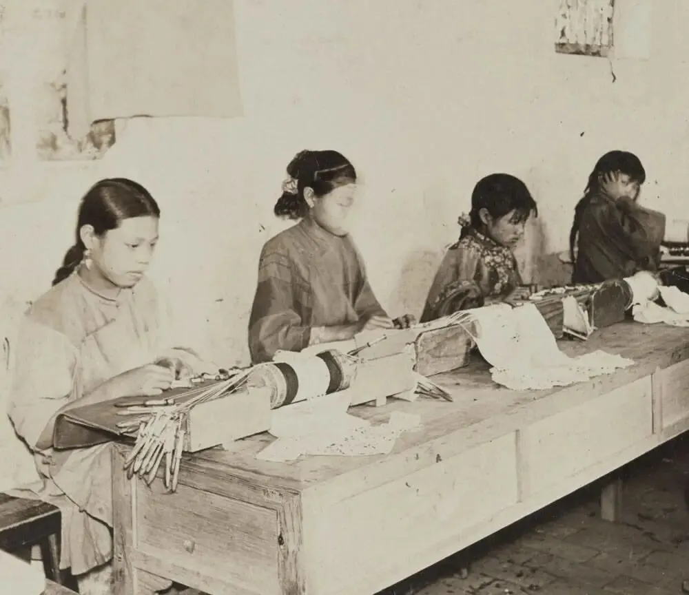 这个一溜木台叫女工技校的花边课,木轴上缠着白线,手指头在梭子间穿来穿去,叮叮当当的声儿细碎又稳,墙上糊着泛黄的画报,老师从后头走过只看一眼就知道谁打结了,我看着想起小时候学缝纫,脚踩踏板一顿乱颠,线头抽不顺就想哭,现在孩子学手工多是兴趣班,灯一亮空调一开,舒服归舒服,少了点那股子专注的劲。
