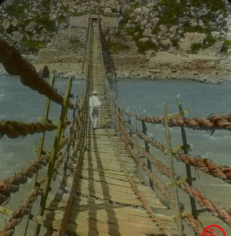 这条过河的细道叫索桥,粗麻绳拧的栏,稀稀落落的木板铺在上头,脚一落下去就空咔嚓响,河水在底下翻白,风一刮人就像被提起来一样,表哥初次过桥,死命抓着绳,回来手心全是绳毛扎的小刺,现在景区里也有玻璃栈道,可那会儿是真要命地过生活。