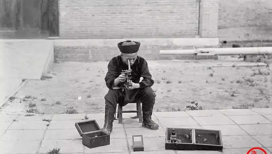 图中这玩意儿叫经纬仪,黑色镜筒细长,三脚架收在木箱里,学生端坐在小马扎上,眼睛凑到目镜边上,手指拨着刻度圈,旁边摊着另一只器材箱,盖里嵌着绒布垫,老师常说,别抖,读数慢点,宁愿多看一遍也别写错一个零,现在想想有点好玩,那会儿的科学味道,竟是从瓦地砖缝里蒸腾出来的。